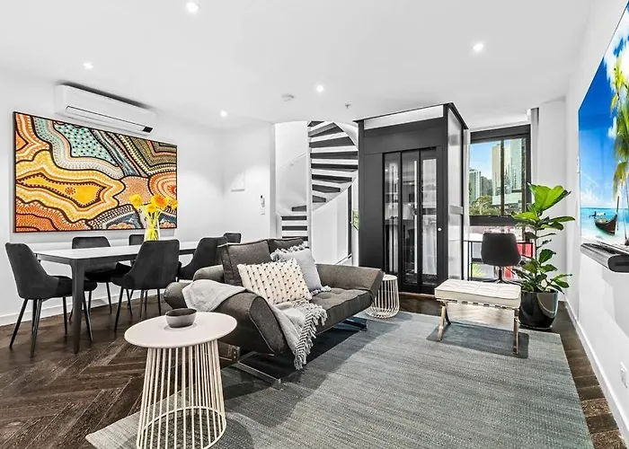Inner City 4 Level Luxury Townhouse & Lift 3Br 3Bth, som ligger ungefär 17 minuter till fots från Crown Towers Melbourne, erbjuder en solig uteplats med utsikt över innergården. I den här villan, som ligger på gångavstånd från Holmesglen Institute City Campus, kan gästerna njuta av Wi-Fi och en privat parkering.